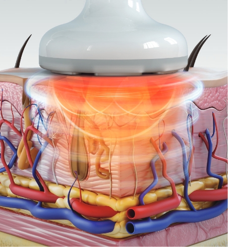 To promote faster metabolism and tightening of collagen fibers, thermal energy is delivered into the dermal and subcutaneous layer.
